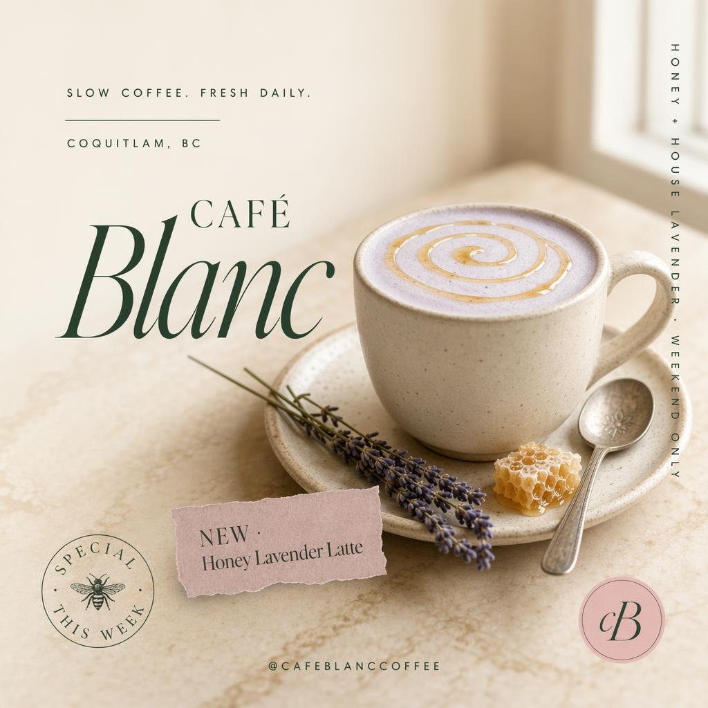 cafeblanccoffeeNew: honey lavender latte. House lavender + local honey, spiralled into warm oat-milk foam. Weekend-only.